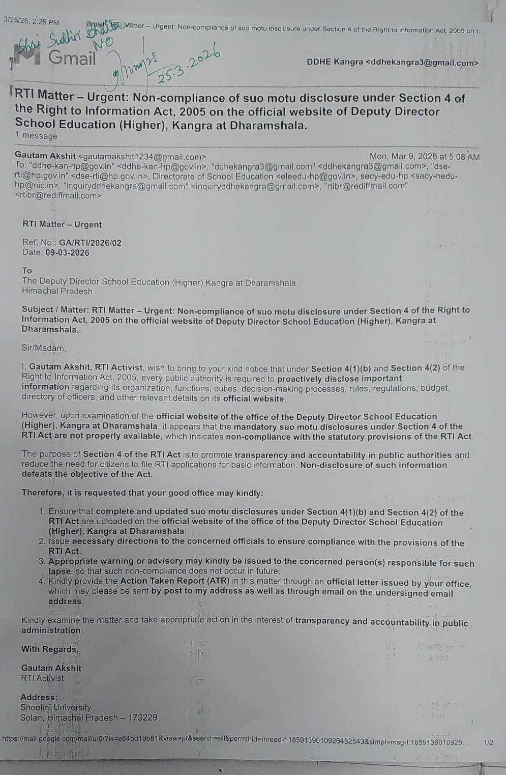 Director School Education Himachal Pradesh